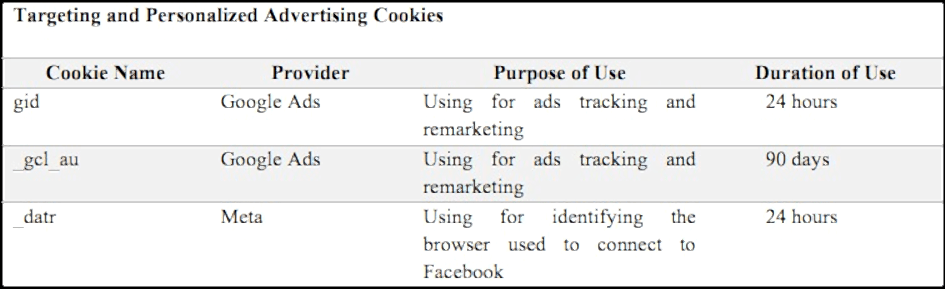 Targeting and Personalized Advertising Cookies